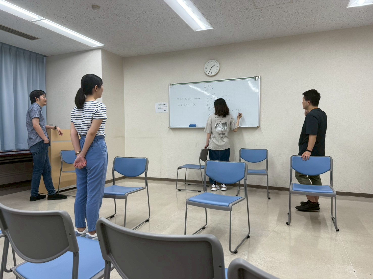どう動く?なんでそう動く?相手役はそれでどう感じた?どういう身体反応をした?……などなどを細かく止めながら詳しく主宰に聞かれつつ、各役者が己のそれを言語化していきます。